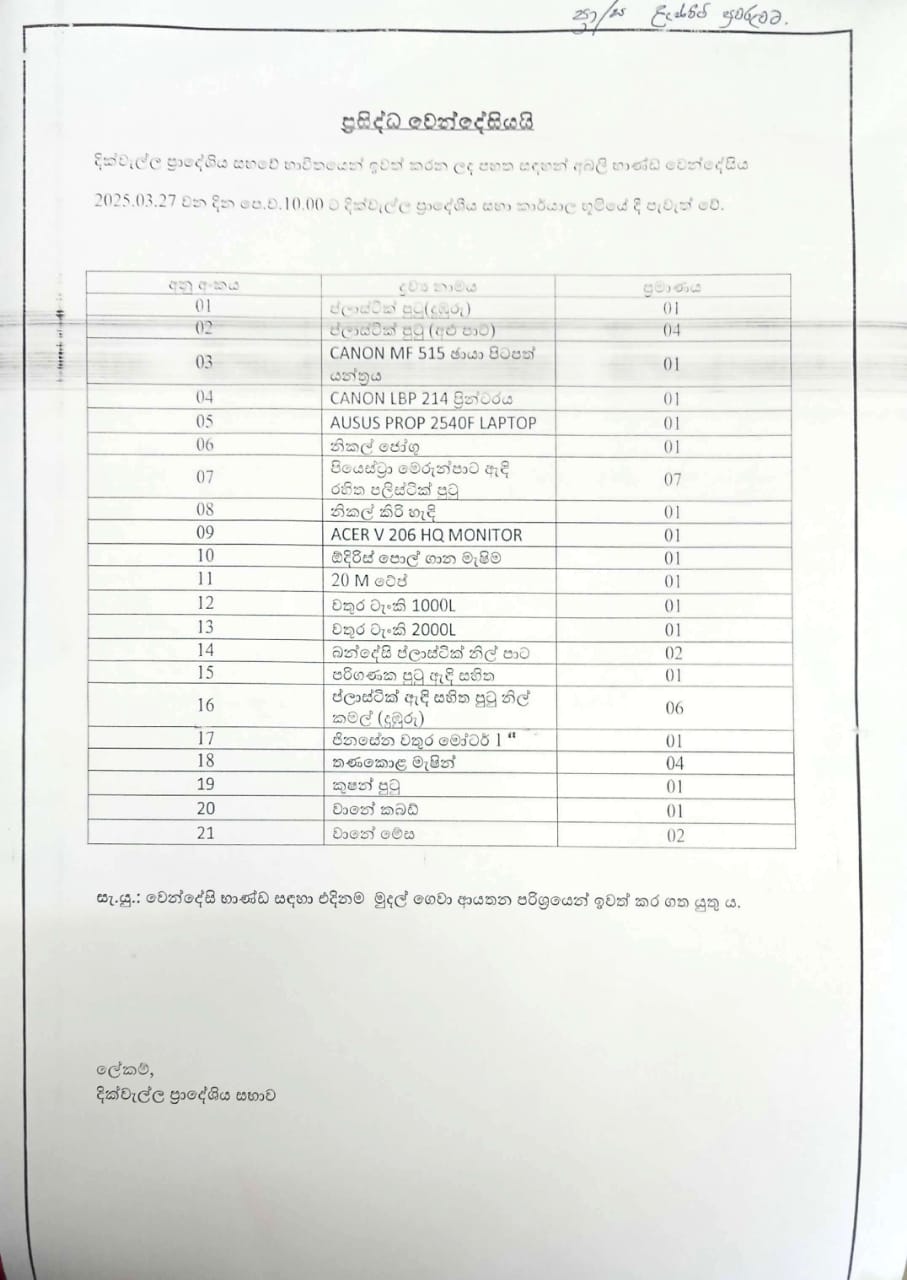 • வீதி எல்லைக்கோடு விண்ணப்ப படிவங்களை பெற்றுக்கொள்ளல்